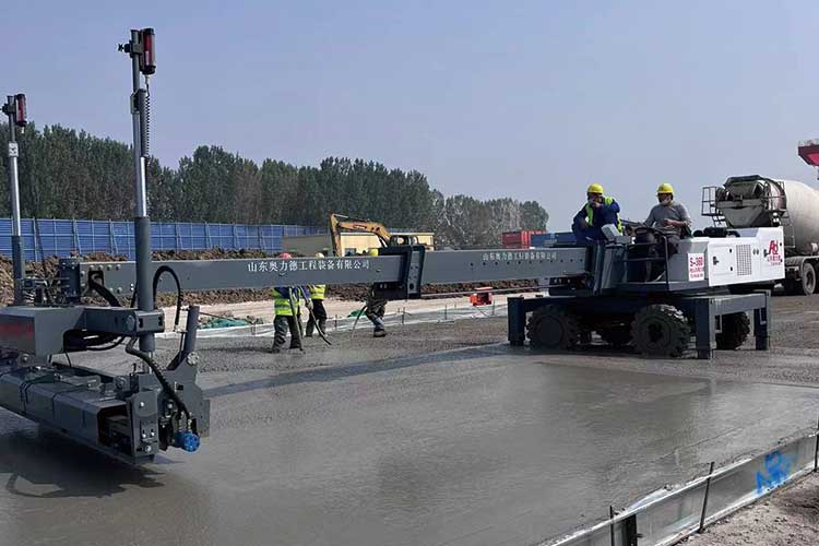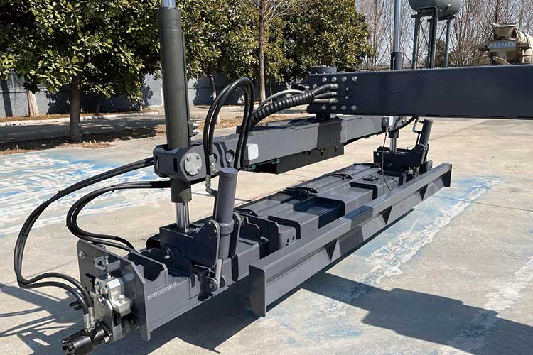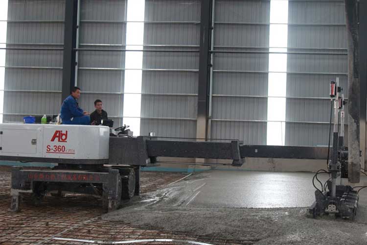 12、360度伸縮臂長6米,旋轉平台快速,4米整平機頭可旋轉擺動,每次24㎡混凝土整平。